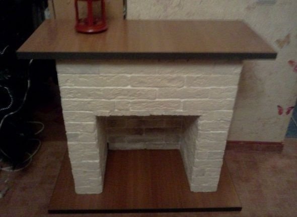 Еще один очень подходящий вид материала для создания искусственного очага - это ДСП. Можно использовать как обычную шлифованную ДСП, так и ламинированную плиту. Выбор зависит от того, как будет выглядеть готовый продукт. Если вы хотите имитировать деревянный камин, то ДСП, безусловно, является предпочтительным выбором. Начать следует, как и в первом варианте, с рисунка. В этом случае необходимо не только представить себе размеры, но и убедиться, что в месте, где вы покупаете ДСП, могут сразу же разрезать его на нужные куски. Это очень удобно как для легкой транспортировки, так и для сборки. В домашних условиях достаточно скрепить все детали саморезами.