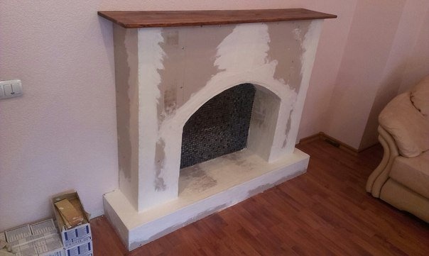 На этом этапе строительство камина из гипсокартона считается завершенным. Остается самая малость - декорирование его поверхности, о котором мы поговорим чуть позже.