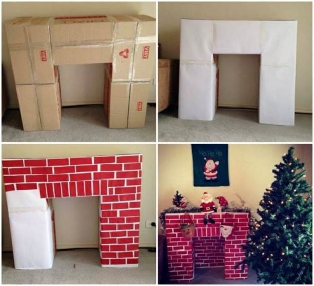 Если у вас есть много картона или небольших картонных коробок от обуви или мелкой бытовой техники, вы можете очень легко "построить" настоящий камин. В дополнение к картону вам понадобятся: