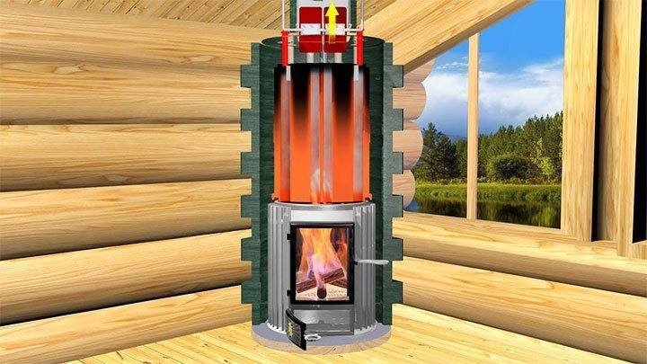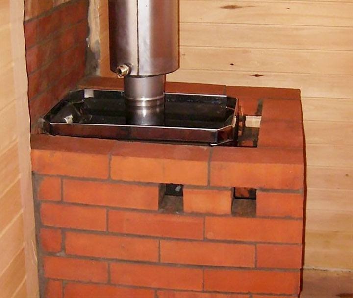 Некоторые производители самодельных печей считают, что конструкция с зольником и колосником не подходит для банных печей - она создает слишком сильную тягу, которая не дает дровам полностью сгореть. Вместо этого дрова следует класть прямо на дно кастрюли, а для притока воздуха следует просверлить несколько круглых отверстий в дне топки и снабдить их раздвижной дверцей.