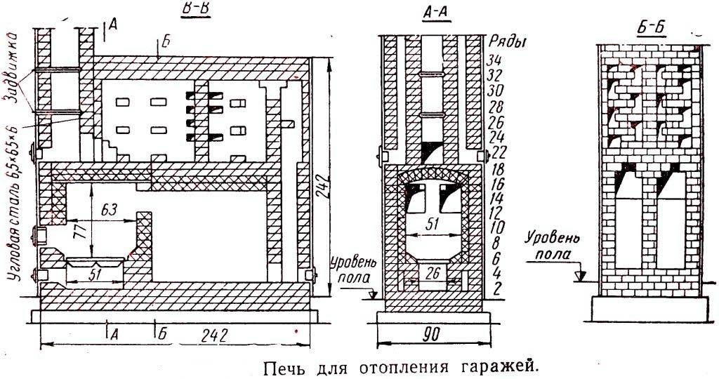 - Дровяные плиты, сделанные из кирпича. Дровяная плита для гаража.