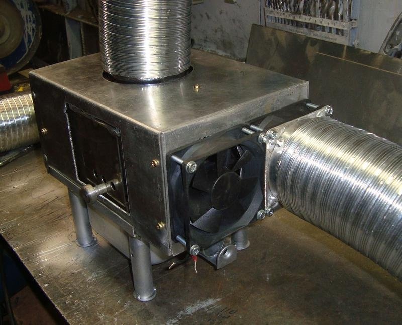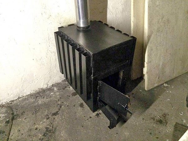 Дымоход лучше всего сделать из хорошей трубы с толщиной стенки 3 мм или более. При желании к плите можно прикрепить ножки. Некоторые любители оснащают своего малыша крыльями. Это увеличивает площадь поверхности горячего металла, и помещение нагревается гораздо быстрее. В месте установки изделия не должно быть посторонних предметов, которые могут легко загореться. Под камином не должно быть деревянного пола или досок. Поместите кусок материала, который не горит, например, асбеста.
