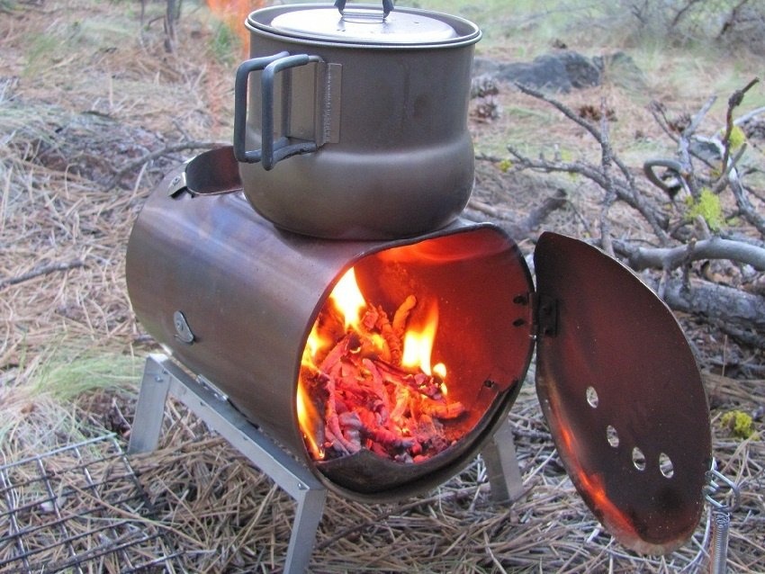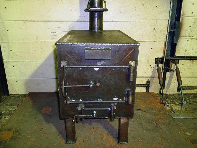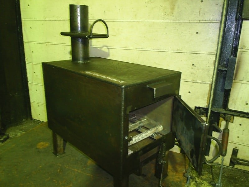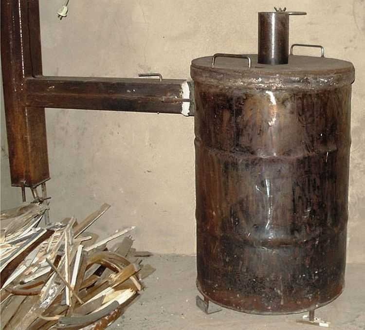 В конце концов, бочки сделаны из тонкого металла и со временем прогорают. Регулировать тягу через одну большую дверь довольно сложно и неэффективно. Строительство такой печи довольно масштабно. Такая конструкция плиты опасна с точки зрения пожара. Печи также могут быть изготовлены из банок, цилиндров, больших нефтяных труб и других сборных металлических конструкций.