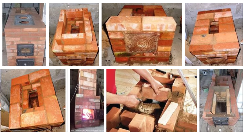 Кирпичи укладываются в соответствии с существующей кирпичной кладкой. Сначала уложите начальный ряд - основание. Затем начните укладывать кирпичи ряд за рядом. Необходимые детали железной конструкции помещаются в отведенные места. Детали фиксируются прямой проволокой, которая затем втапливается в кирпичные ряды. При необходимости сверху можно поставить горячую плиту. Наконец, дымоход укладывается в соответствии со структурой ряда.