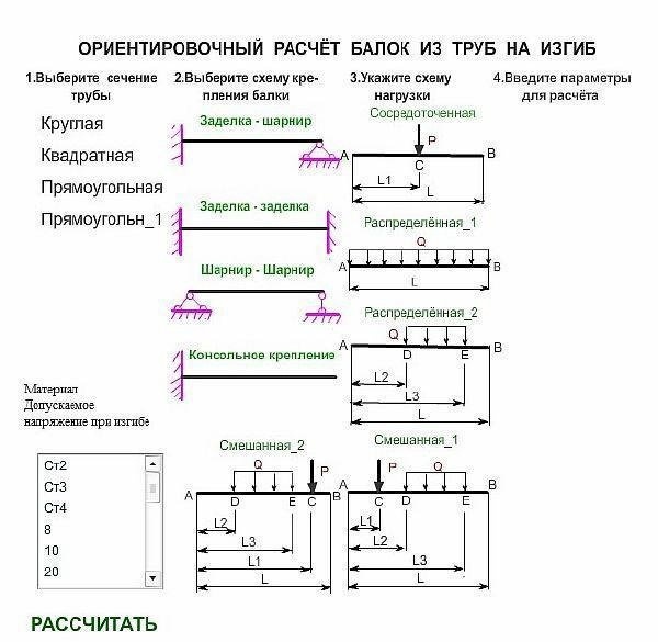 Расчет балок из труб, круглых, квадратных, шестигранных и прямоугольных стержней на изгиб и прогиб - онлайн калькулятор