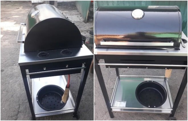 При желании вы можете сделать подобный гриль из 60-литровой, 50-литровой или 100-литровой бочки. Однако следует учитывать, что его покрытие тоньше, а срок службы при том же объеме работ гораздо меньше.