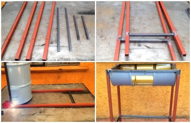 Вот как сделать простые ножки для барбекю из 60-литровой или 50-литровой бочки: