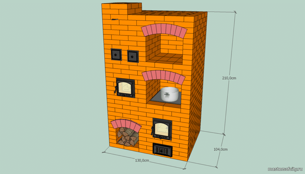 Какими бы ни были кирпичные кухни для отопления и приготовления пищи, их конструкции обязательно включают несколько основных элементов.
