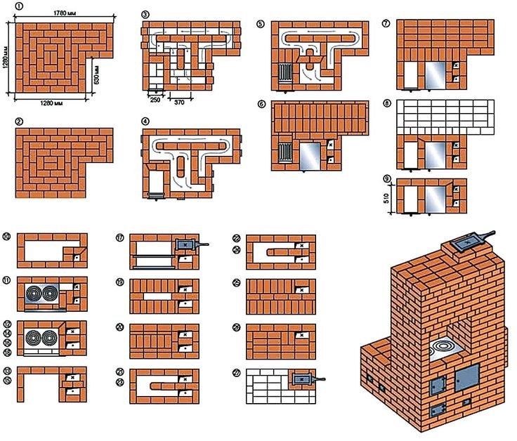 Плиты, используемые не только для отопления, но и для приготовления пищи, являются, пожалуй, одним из самых популярных типов плит в истории человечества, с огромным количеством вариантов кладки, вариаций размеров и дополнительных функций. Можем ли мы построить из кирпича собственные плиты для отопления и приготовления пищи? Безусловно, можно - конечно, при тщательном соблюдении пошаговой технологии строительства и внимательном отношении к чертежам. Следует отметить, что отопительно-варочные кирпичные печи, конструкции и которых не намного сложнее обычных печей, бывают и очень приличных размеров (вплоть до двухэтажных вариантов), и совсем небольшие (ярким примером является отопительно-варочная печь Малютка, гребущая в стандартный 31 ряд, из которых сочетается с очень маленькой площадью). Поэтому, говоря о плитах этого класса, стоит сначала разобраться в их конструктивных особенностях и общих утилитарных преимуществах.