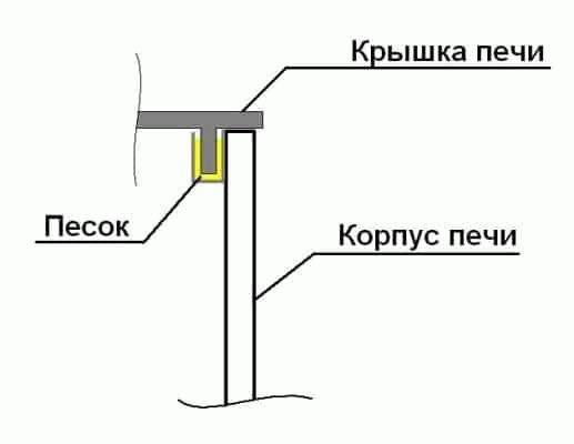 Теперь плита готова к работе. Если у вас есть сомнения в герметичности крышки, вы можете сделать простую песочную прокладку, как показано на рисунке.