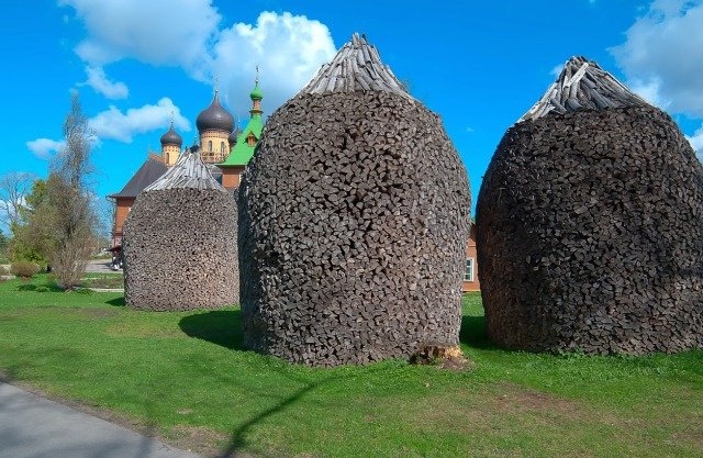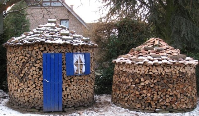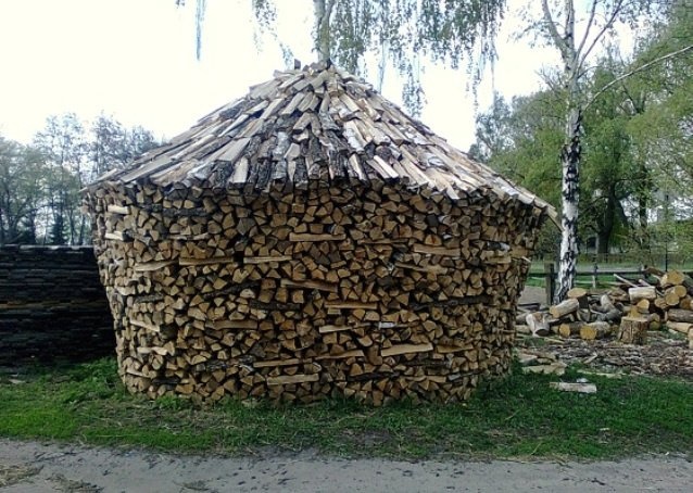 Некоторые любители дерева создают интересные конструкции бункеров, напоминающие купол или стог сена.