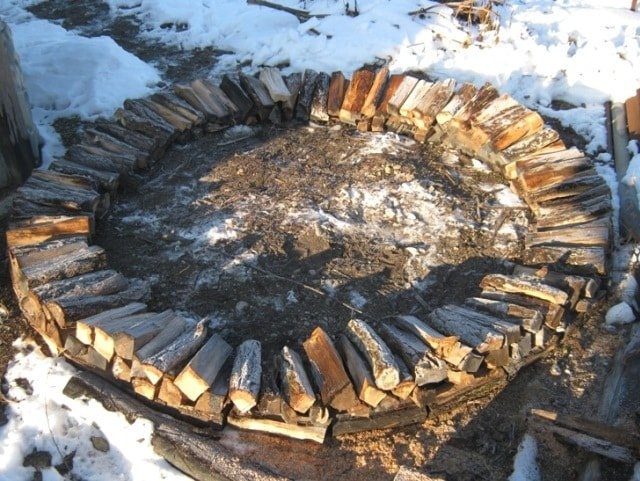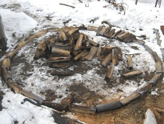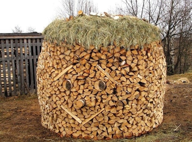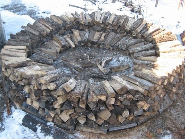 Укладка дров по кругу создает устойчивый штабель и открывает хорошие перспективы для его декорирования.