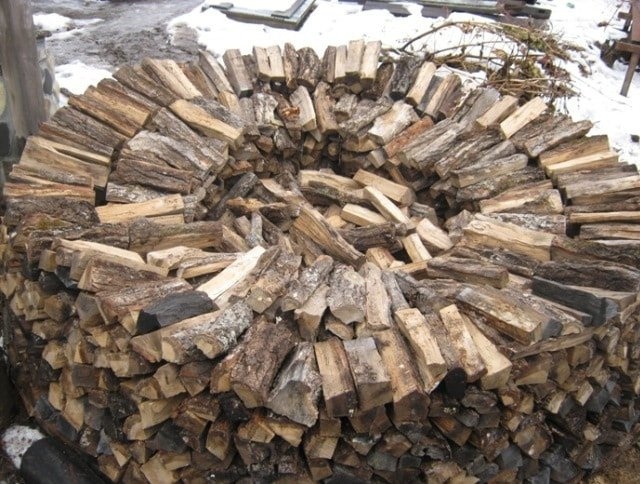 Общее правило для всех видов твердого топлива заключается в том, что оно должно быть сухим сверху и снизу. По этой причине штабель бревен возвышается над землей, а верхний ряд покрывается материалом, который не пропускает атмосферную влагу.