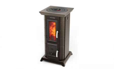 Компания Gusa сделала ставку не на производительность, а на дизайн. Плита напоминает старинный очаг с огромным стеклянным стеклом на очаге. Модель занимает площадь 210 м2, что достаточно для больших дач.
