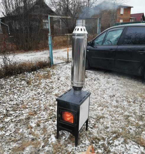 Камера сгорания всеядна и может работать с древесиной, торфом, древесными отходами и даже углем. Крышка плоская и нагревается сильнее, чем остальная часть кастрюли, поэтому ее можно использовать для приготовления пищи.