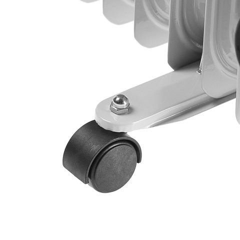 Для удобства хранения в корпусе имеется отсек для кабеля. Благодаря удобной ручке и легким колесикам обогреватель можно легко перемещать с места на место. Корпус имеет антикоррозийное покрытие.